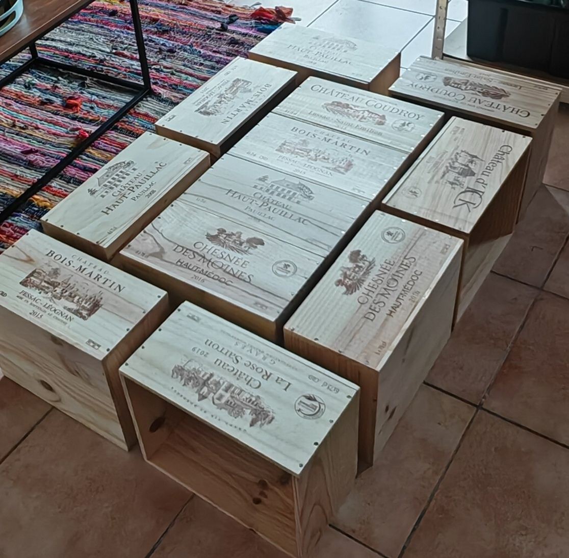 Re: Projet table de salon avec caisses de vin