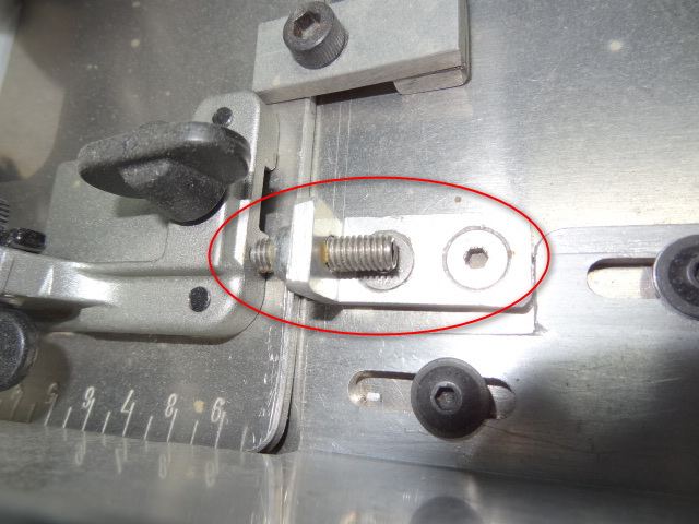 - une butée de positionnement (permet également le réglage du parallélisme de la lame à la trajectoire) - La vis cuvette est freinée à la néoprène.