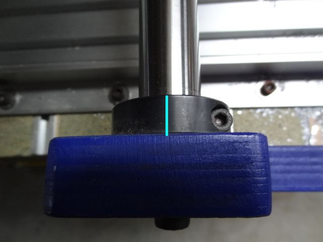 Le mien est placé à environ 30/35 mm de la face en bois. C'est trop,10 mm est suffisant et vous gagnerez 20 à 25 mm de longueur de sciage. Ne pas le coller à la paroi pour permettre son réglage angulaire.