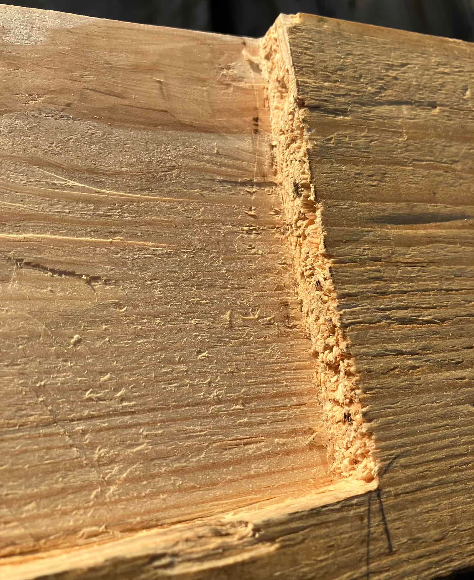 Pourquoi tu coupes au ciseau les extrémités des planches ( où c'est juste pour la photo?) car un sciage propre sera mieux.