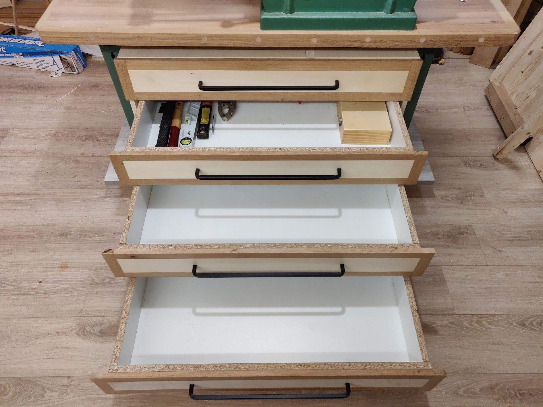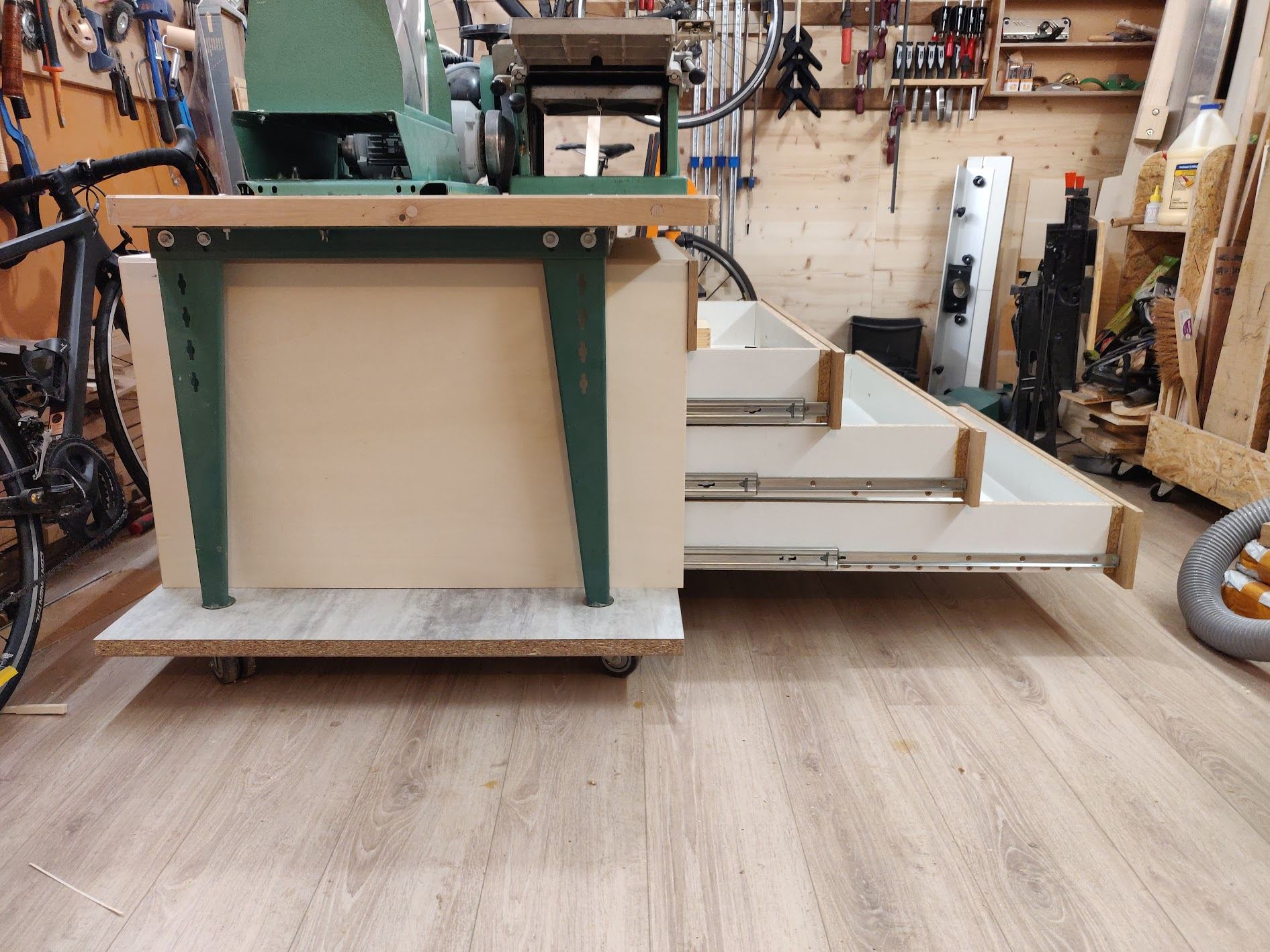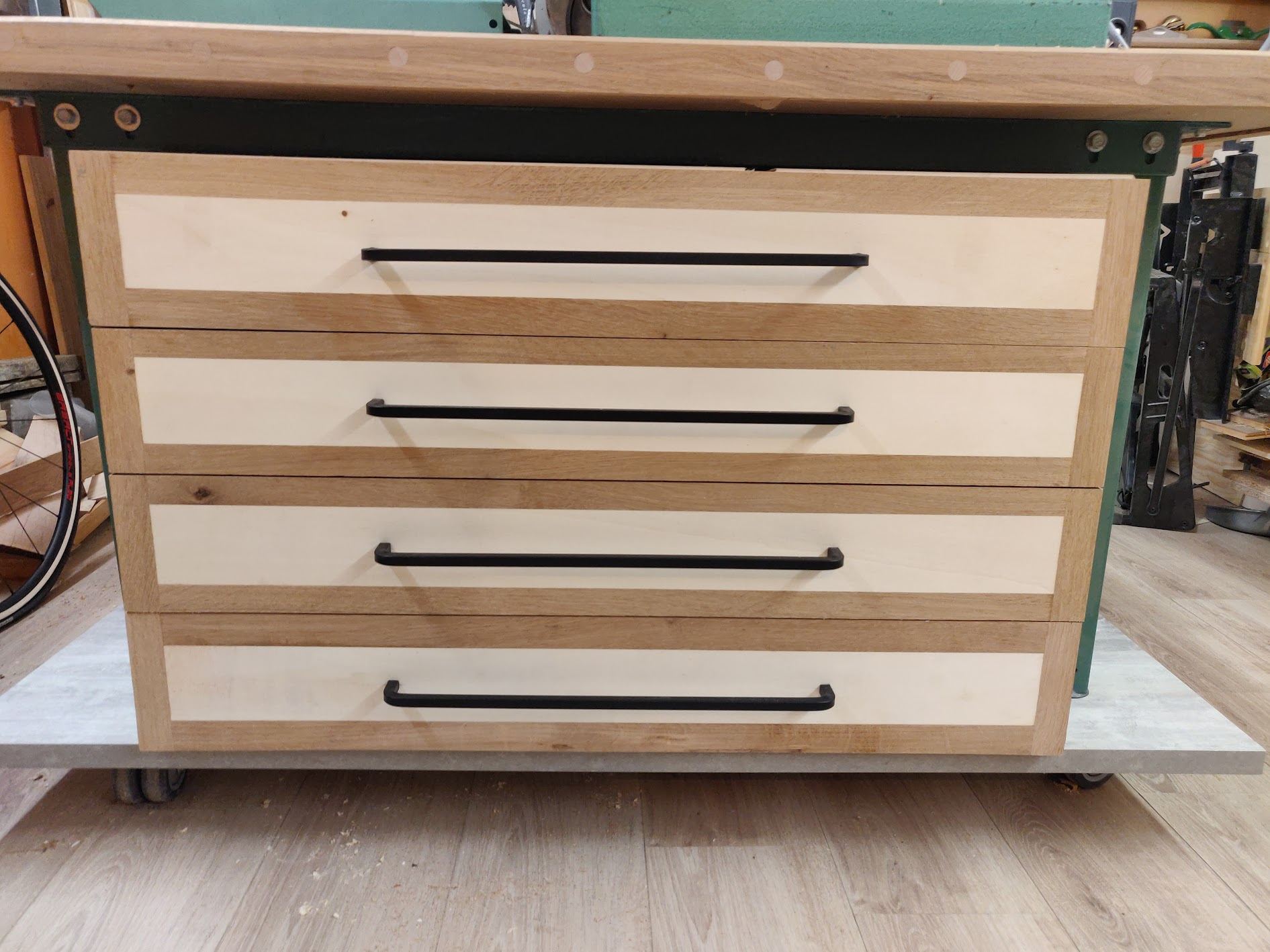 Sinon, pour vos meubles bas d'atelier à tiroirs, quels matériaux avez-vous utilisé pour réduire le coût ?