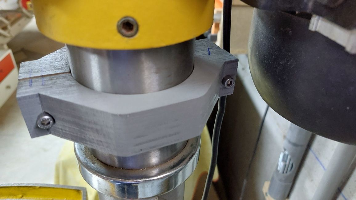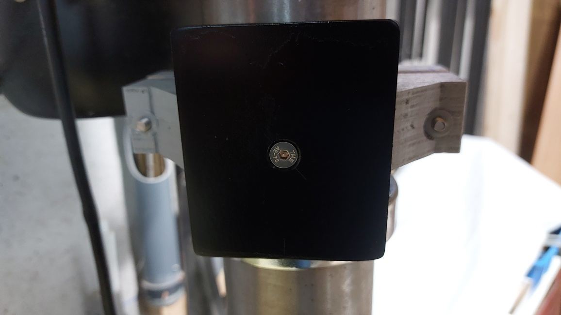 J''ai réalisé un collier en bois (CP 30 ) placé en haut autour de la colonne et l'ai équipé d'une plaque métallique pour accueillir l'aimant.