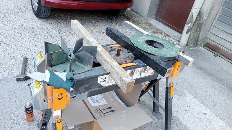 L'idée était d'utiliser mon aspirateur de copeaux Robland pour ventiler ma "cabine de peinture" comme je l'avais déjà fait par le passé.