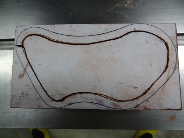 J'ai également mal choisi mon entrée de lame car immédiatement après avoir traversé la paroi, je devais tourner presque à 90°, ce qui a donné lieu à un petit défaut.