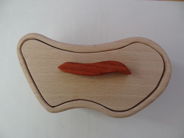 Toujours dans mes débuts en chantournage et avec les plans et bons conseils de Roger je me suis lancé dans la réalisation d'une petite boite d'environ 140 mm de long et 50 mm d'épaisseur.