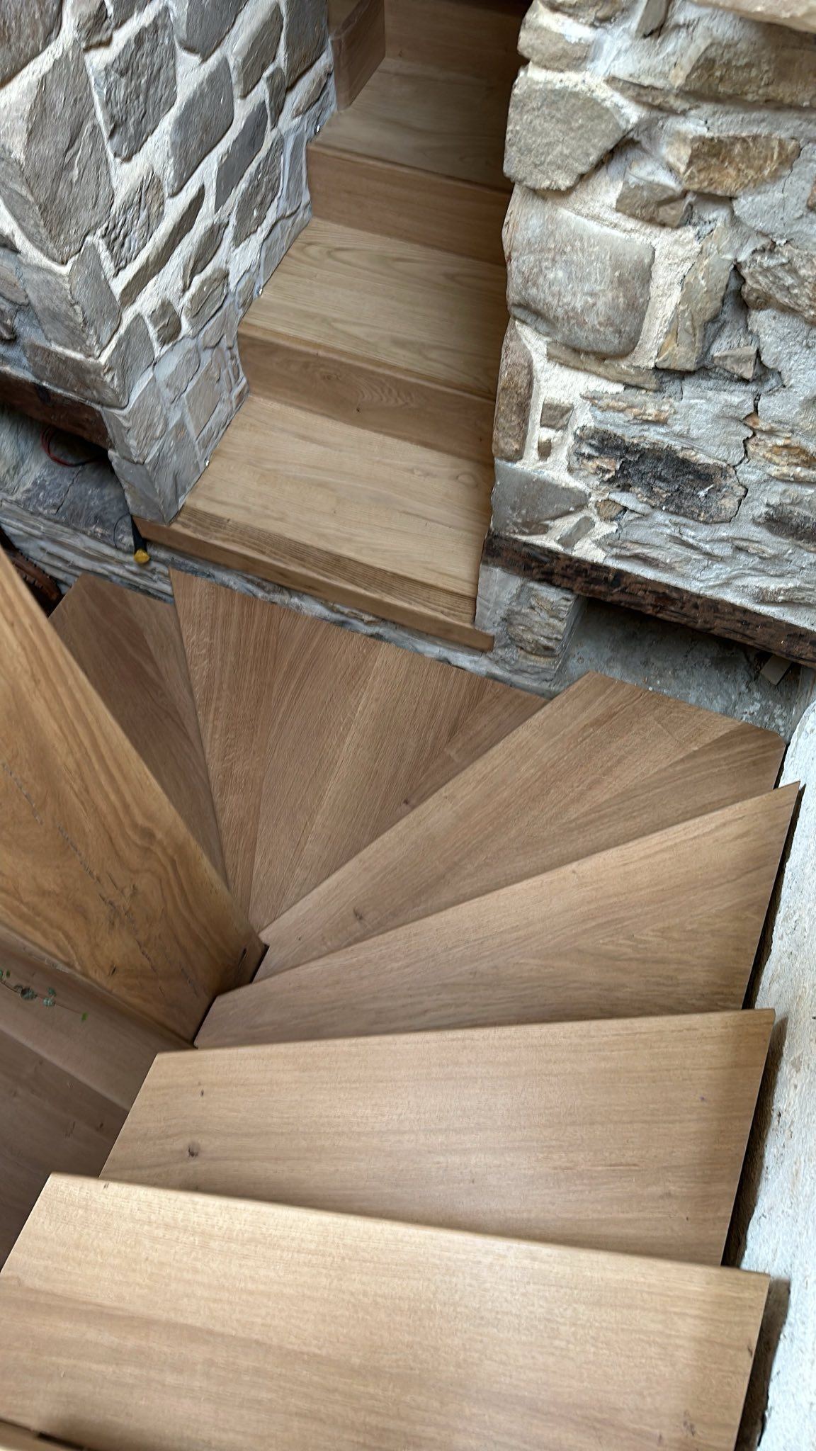 Finition: fondur et vitrificateur pour escalier Anova bois.