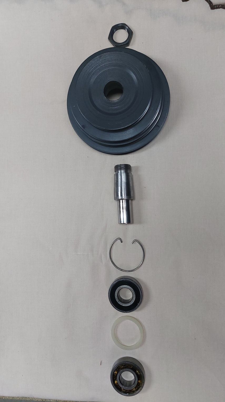 (Commande chez 123 R pour 48 € FDP inclus pour les 5 roulements - 1 pour la poulie intermédiaire - 2 pour l'axe de poulie "broche" - 2 pour la broche)