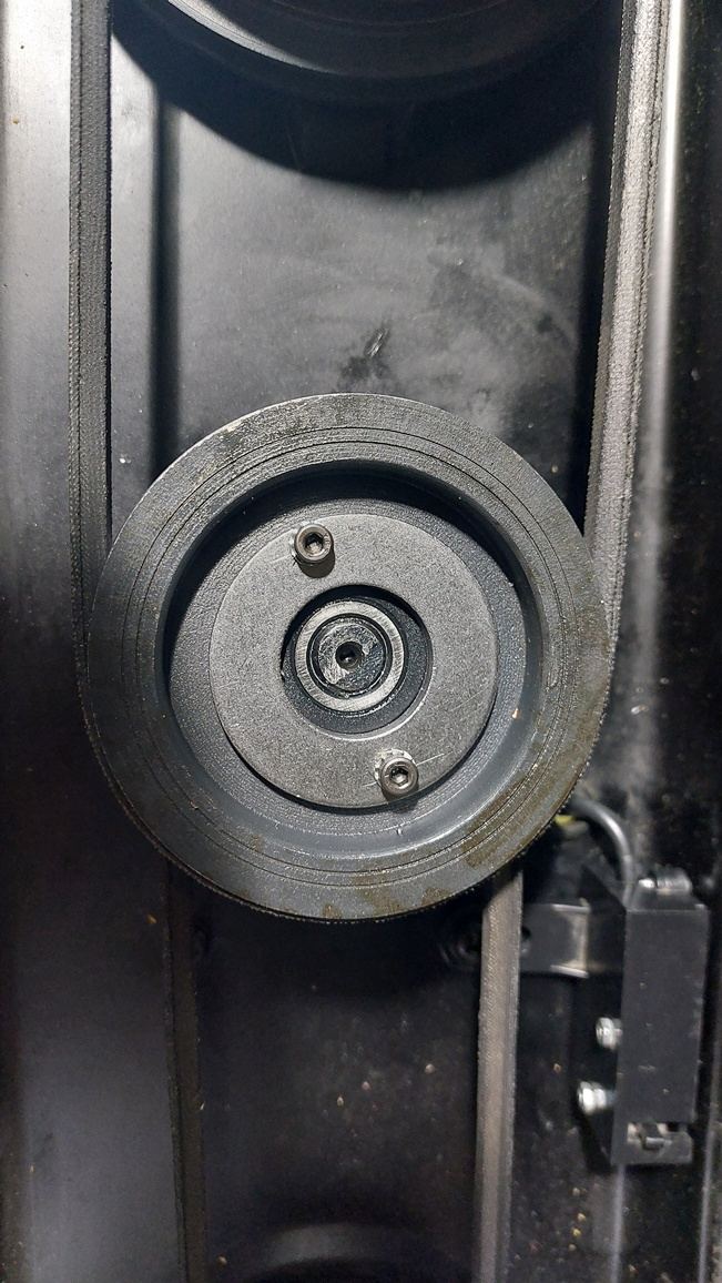 Le seul jeu excessif trouvé est sur la poulie intermédiaire. Ce qui ne m'étonne guère vu le montage et l'effort dessus. Le bruit pourrait provenir de cet endroit.