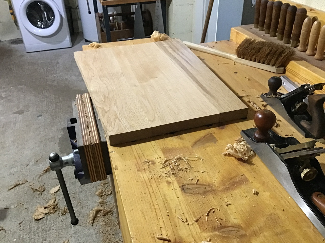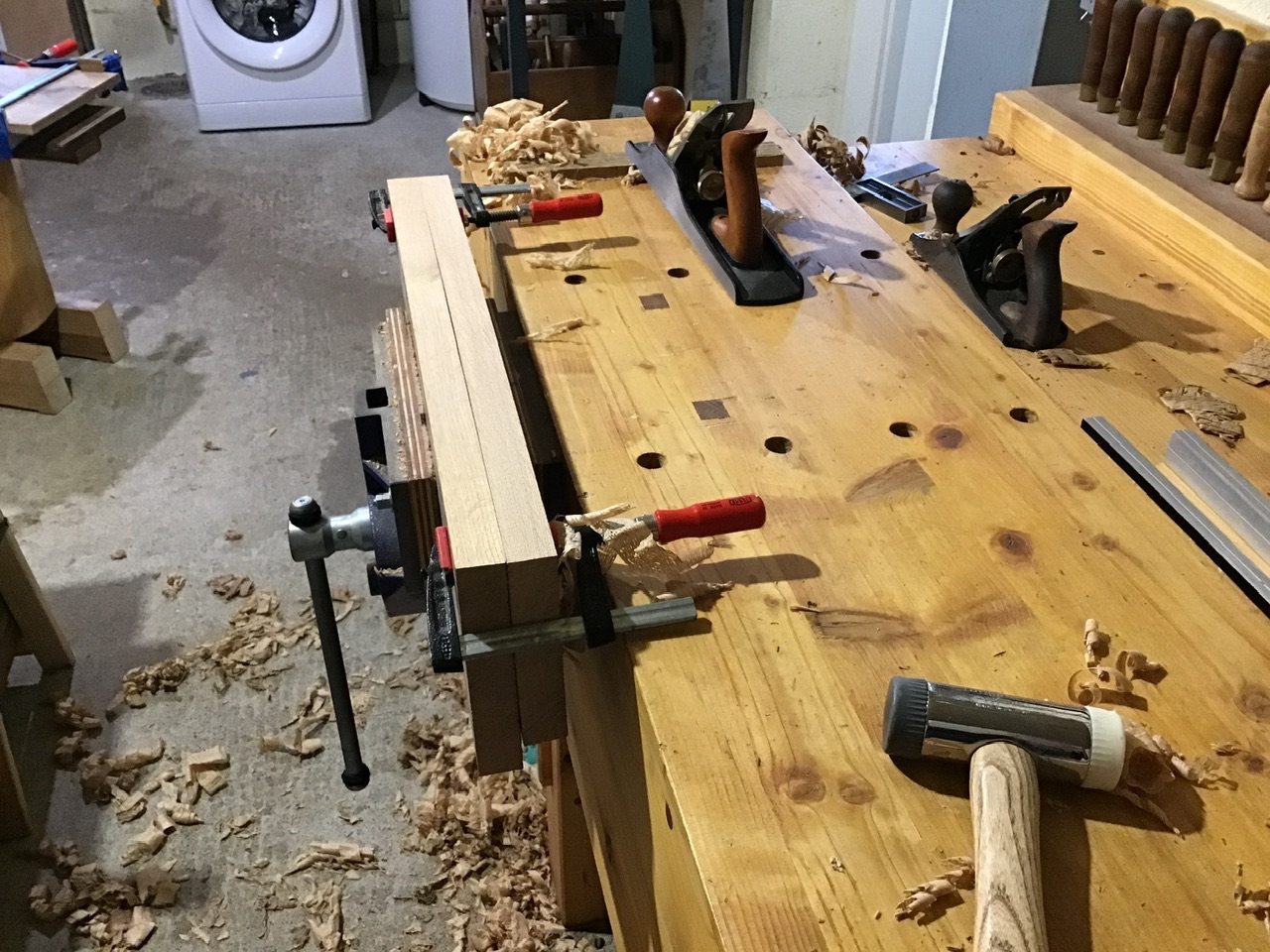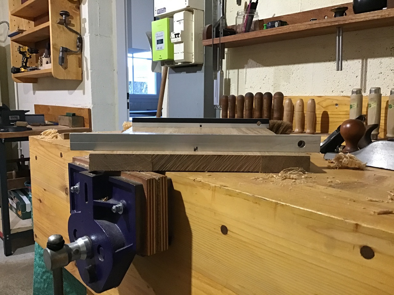 Quand je reviens avec le rabot je le soulage pour qu’il n’emporte pas la pièce vers l’arrière et une presse pour le serrage n’apporterait pas grand chose de plus.