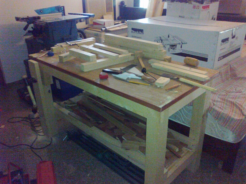 sinon je me suis quand même fait un établi avec de la recup de sapin de caisse.