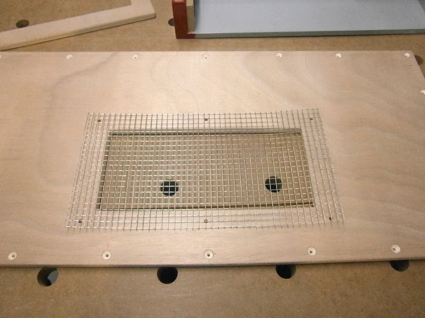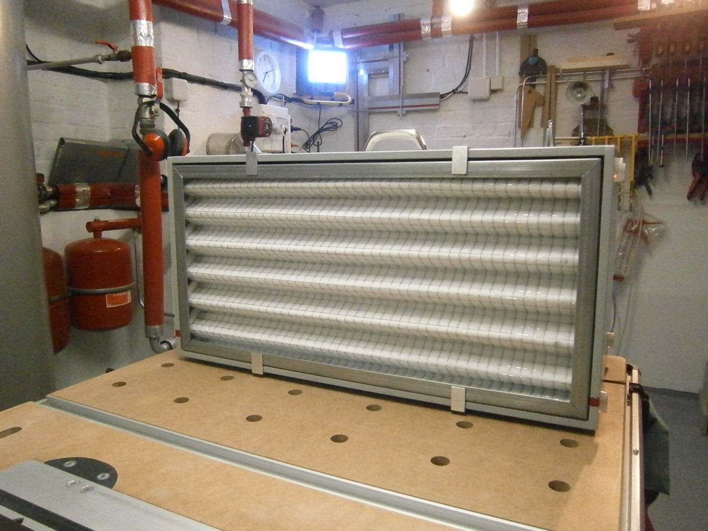 Photo 022 - Vue du filtre plan (ici avec cadre galvanisé) au cours de la fabrication du caisson