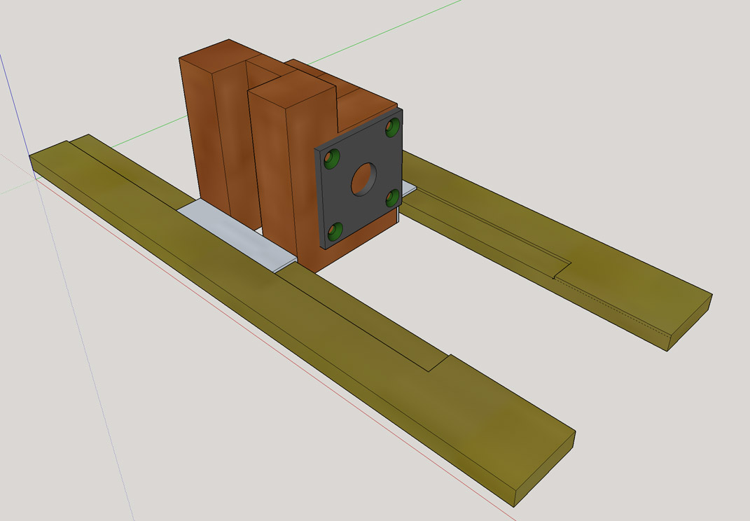 Le croisillon je l'ai construit deux fois parce que le premier était pas assez parfait pour que ça presse correctement. Pourtant il y avait pas tant d'erreur que ça, un demi-millimètre par-ci par-là, mais ça pardonne vraiment pas, il faut s'appliquer pour avoir des trous parfaitement centrés dans l'épaisseur du profilé, l'axe du croisillon parfaitement centré, les trou de fixation des axes dans le pied et la partie mobile parfaitement droits, etc...