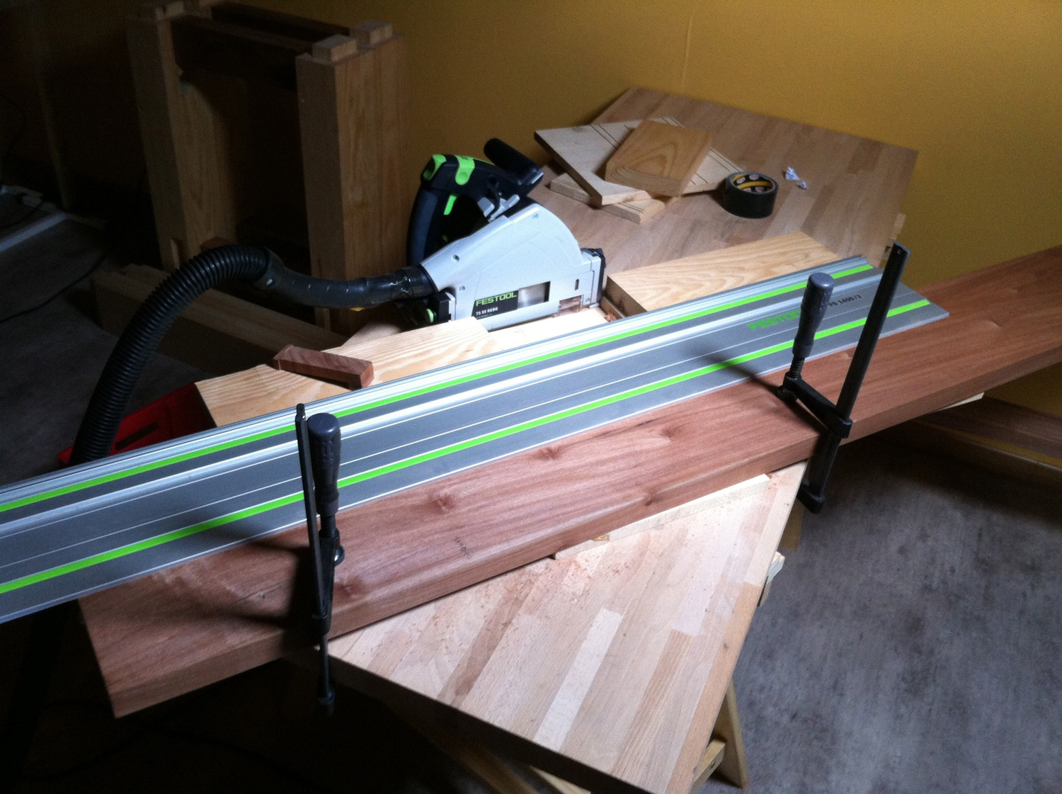 Comme je ne voulais pas acheter un autre rail juste pour ça, j'ai fait toutes les longues découpes en deux fois.