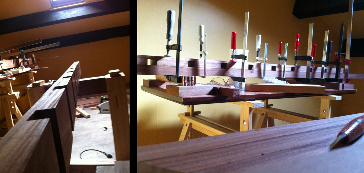 Reste à m'occuper de faire les parties en hêtre, à préparer la presse de bout, et à coller tout ça.