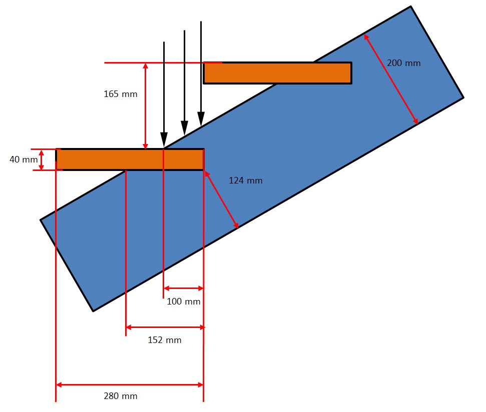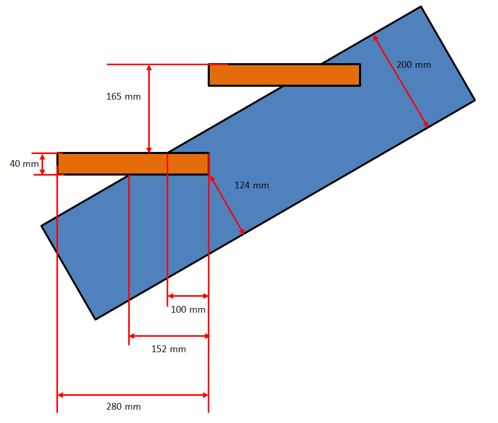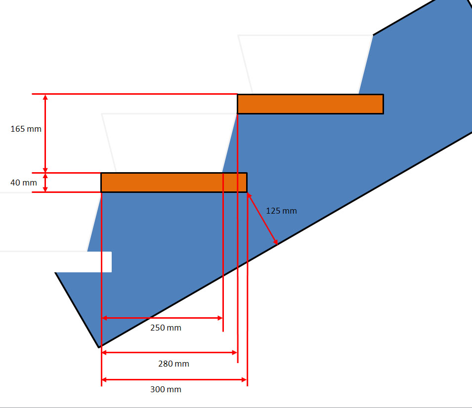 J'ai dans l'idée de faire un limon central qui a une section de 120*200mm en encollant 3 planches de chêne de 40mm. Dans ce limon, je pense usiner l'emplacement des marches. Cet usinage serait de 152mm sur l'appui inférieur de la marche et 100mm pour l'appui supérieur.