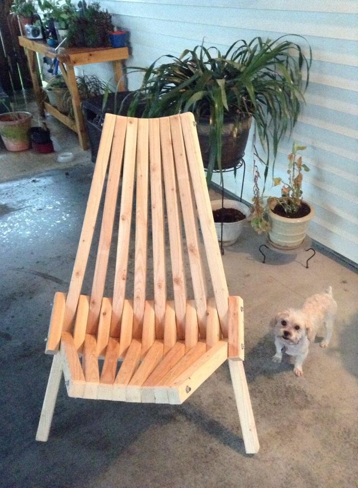 Je connaissais cette chaise pour avoir cherché des modèles de chaise-longues récemment, c'est un modèle américain appelé "Panamerican Deck Chair" réputé pour la simplicité de son assemblage et son confort. Il paraît qu'on peut la faire avec des simples branchages. Pas encore essayé mais ta version donne envie, merci pour tes tuyaux.