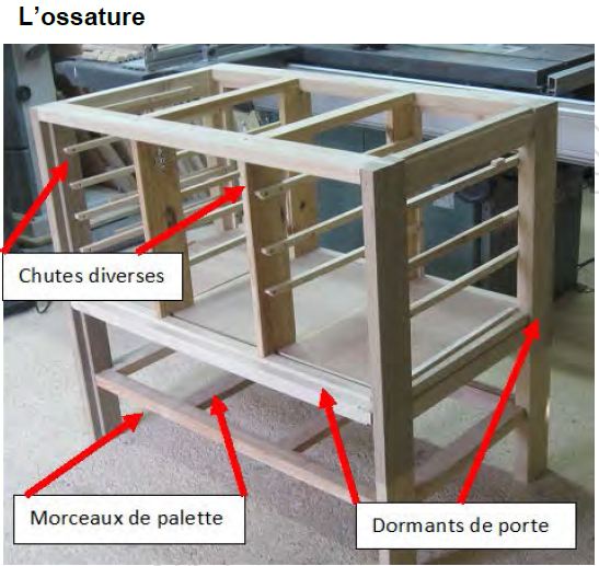 Vue de dessous permettant de voir les cornières destinées à rigidifier la table