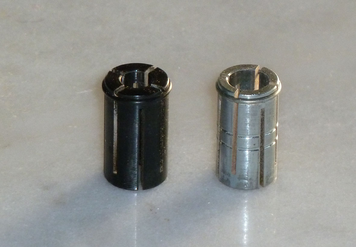 J'avais vu qu'il existait des réducteurs mais vu que j'ai lu sur certains forums que des personnes avaient rencontré des problèmes en utilisant des réducteurs, j'étais un peu sceptique! D'autant que sur le manuel de Triton il est mentionné : "Utiliser uniquement des fraises dont le diamètre de la queue de fixation correspond exactement à celui de la/des pince(s) livrée(s) avec cette défonceuse." :geek: